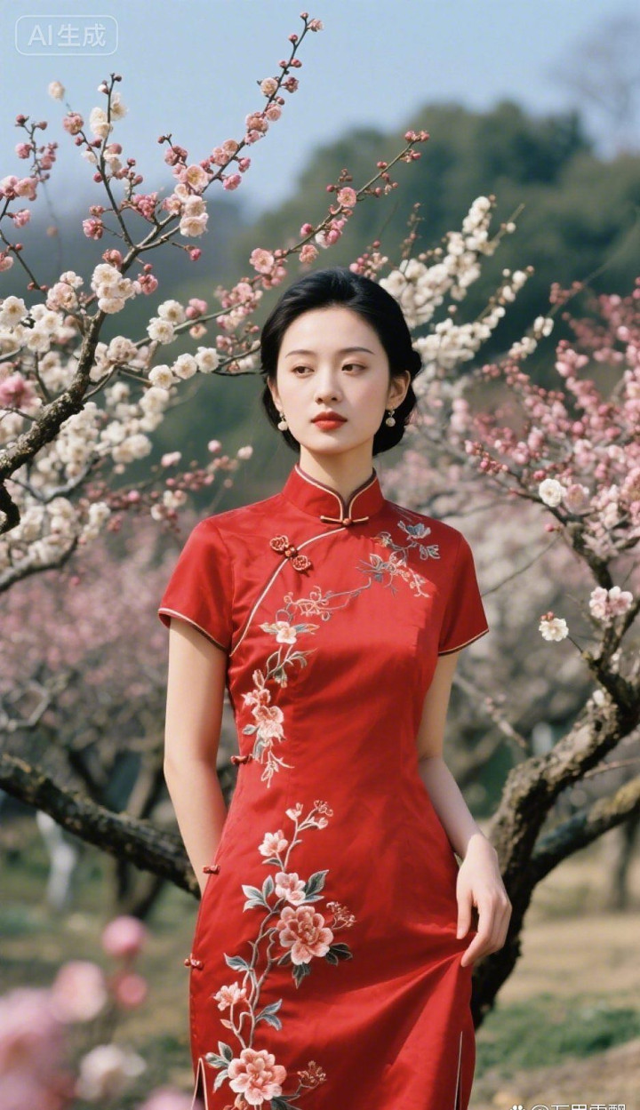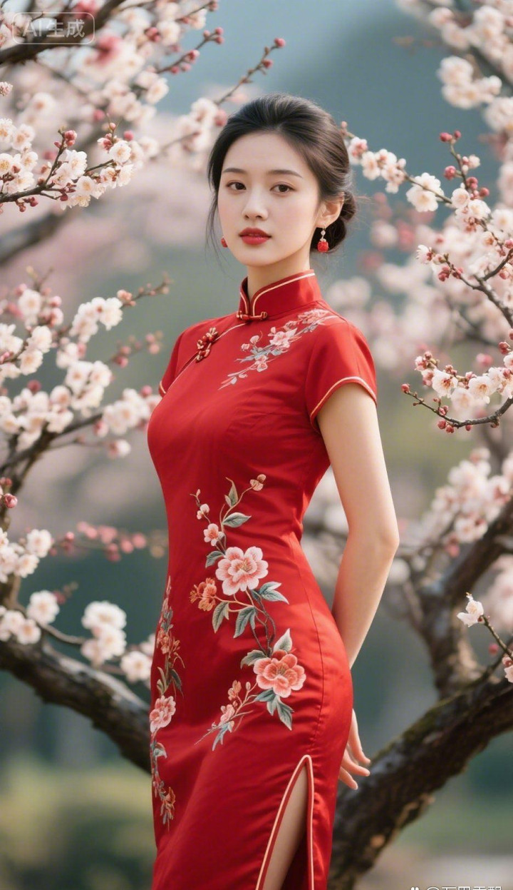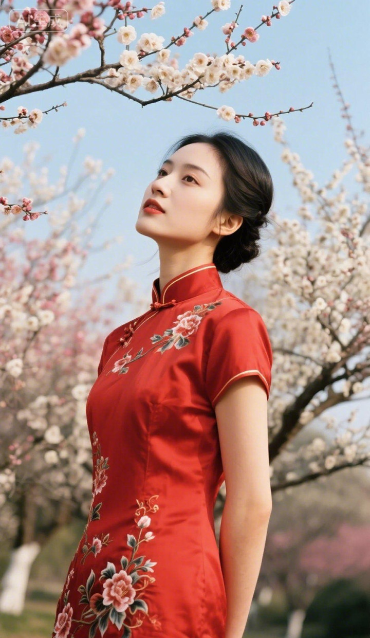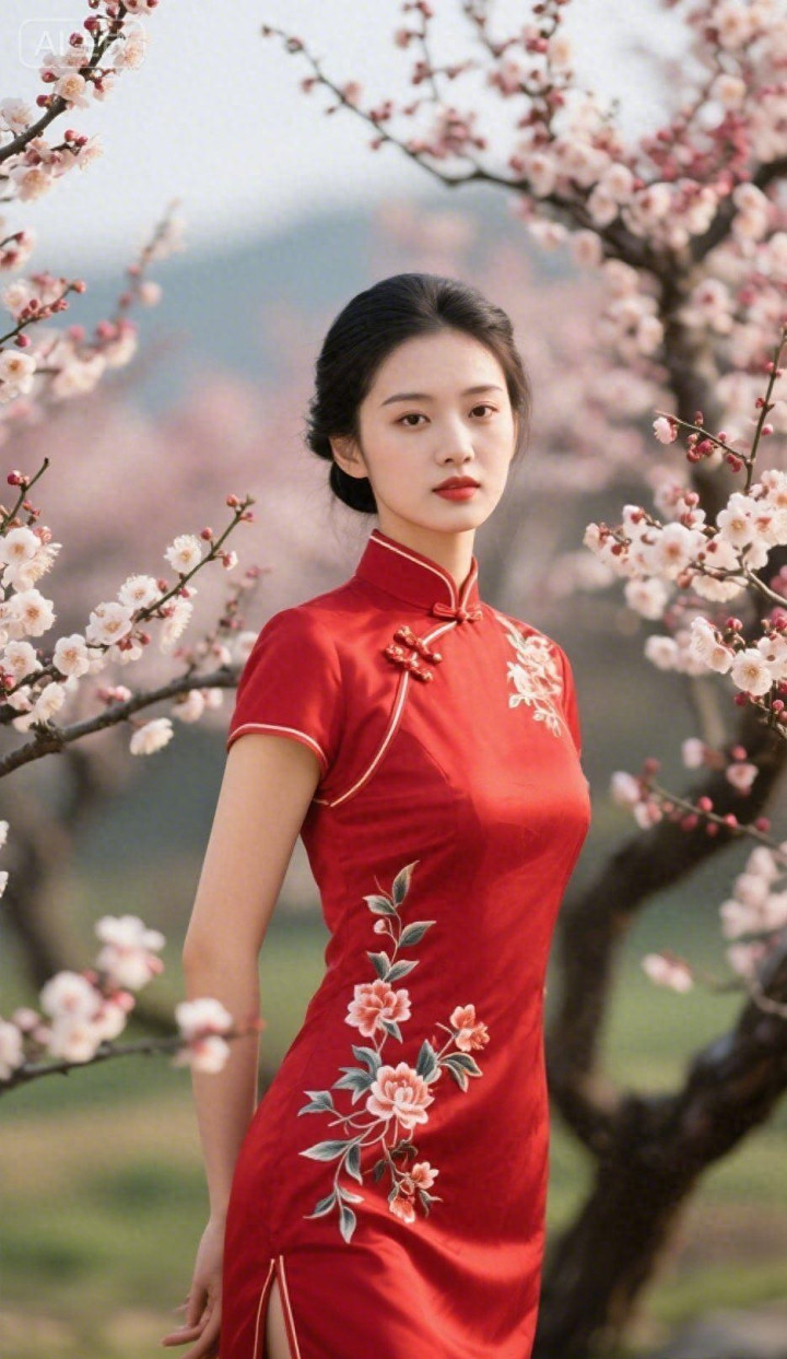 桃花园里的旗袍美女