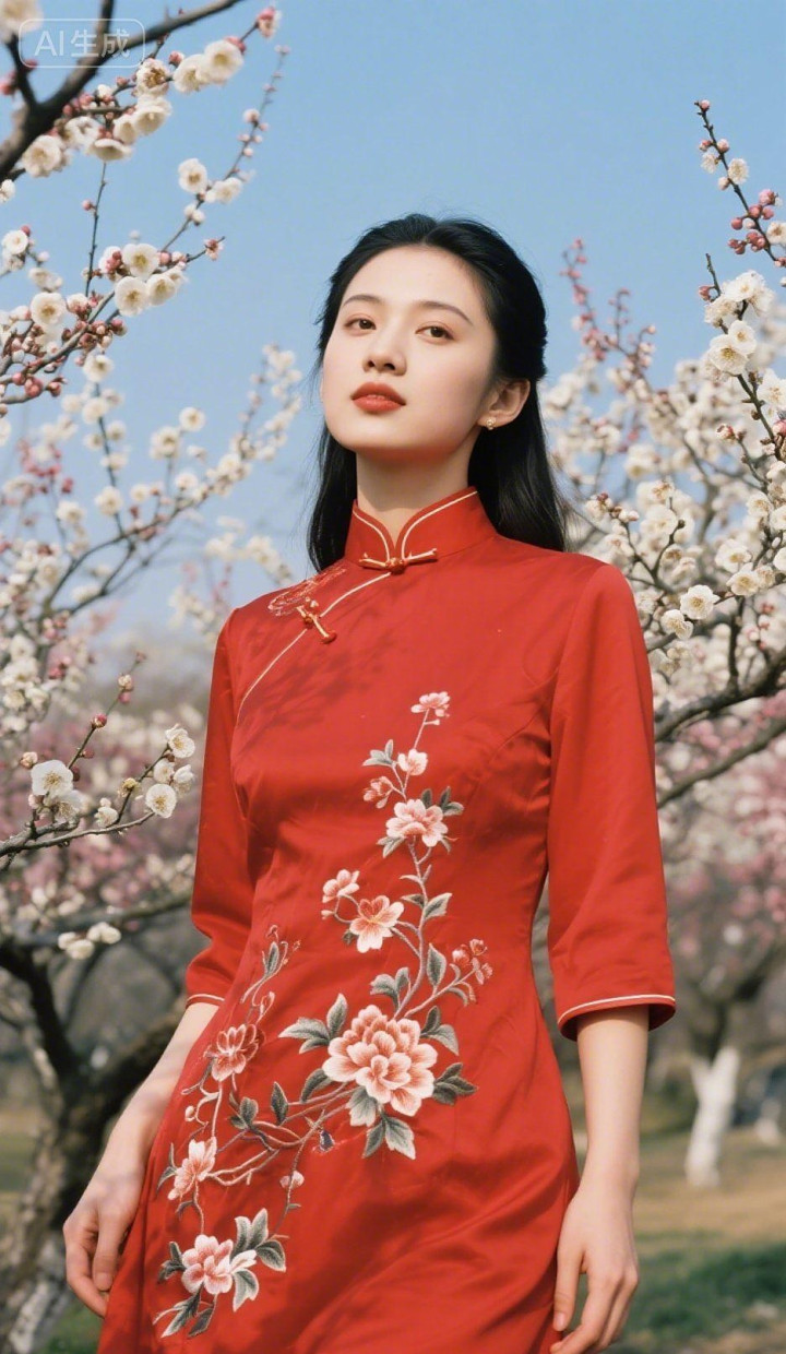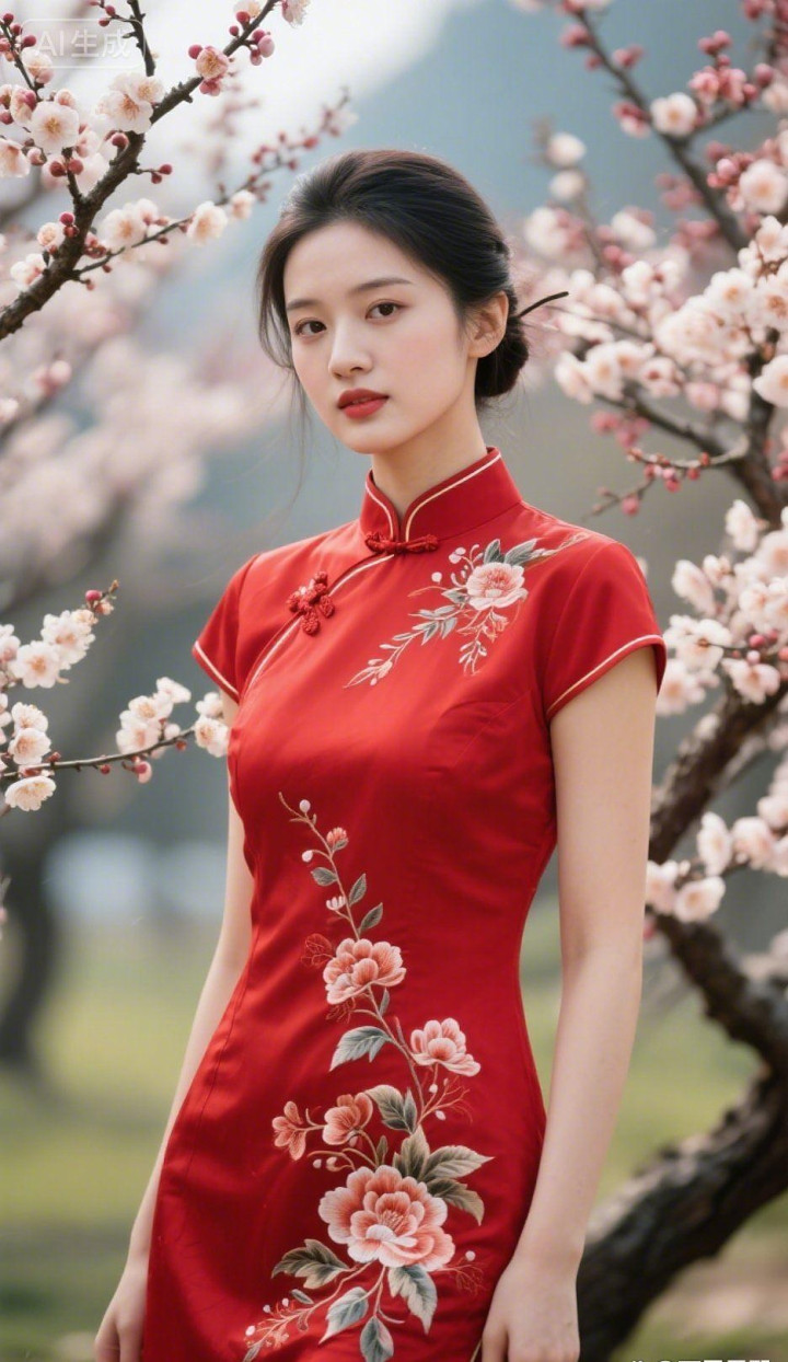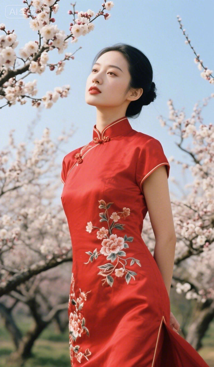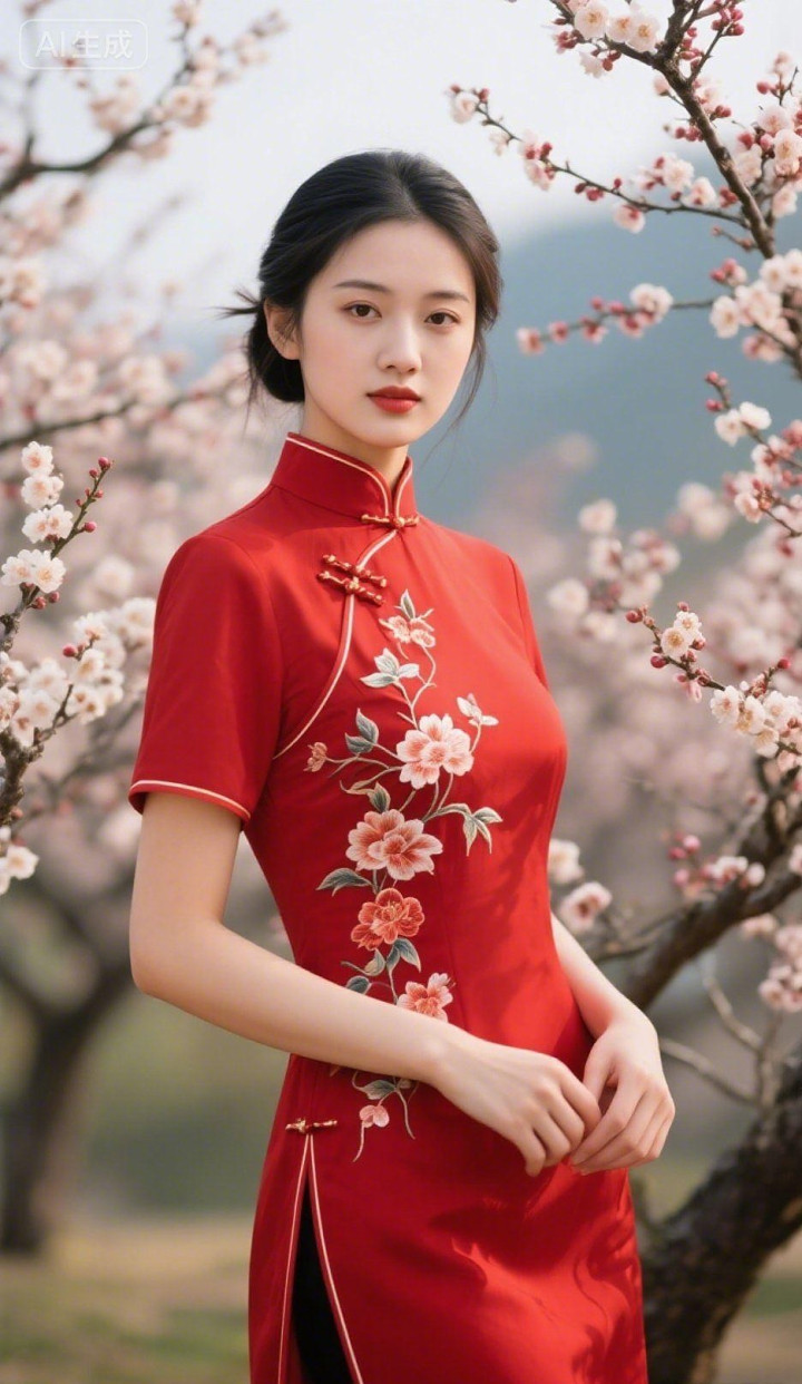 桃花园里的旗袍美女